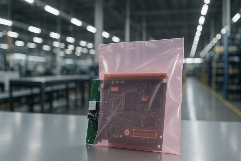 ถุงเหล่านี้ผลิตจากพลาสติกที่มีสารเคมีเติมเข้าไป (Amine-based anti-static agent) ซึ่งจะ ยับยั้งการเกิดประจุไฟฟ้าสถิตย์ บนพื้นผิวของตัวถุงเองได้ ทำให้เมื่อแผงวงจรหรืออุปกรณ์สัมผัสกับถุง จะไม่เกิดการสร้างประจุที่เป็นอันตรายต่อชิ้นส่วนอิเล็กทรอนิกส์ที่มีความไวสูง (Static-sensitive devices). - ราคาไม่แพงและมองเห็นได้ (Cost-Effective and Visible)